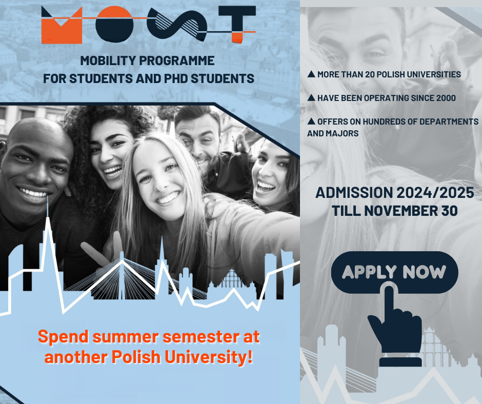 MOST is a mobility program designed for students and doctoral candidates. It has gained significant popularity, allowing participants to study for a semester or an entire academic year at one of twenty Polish universities.