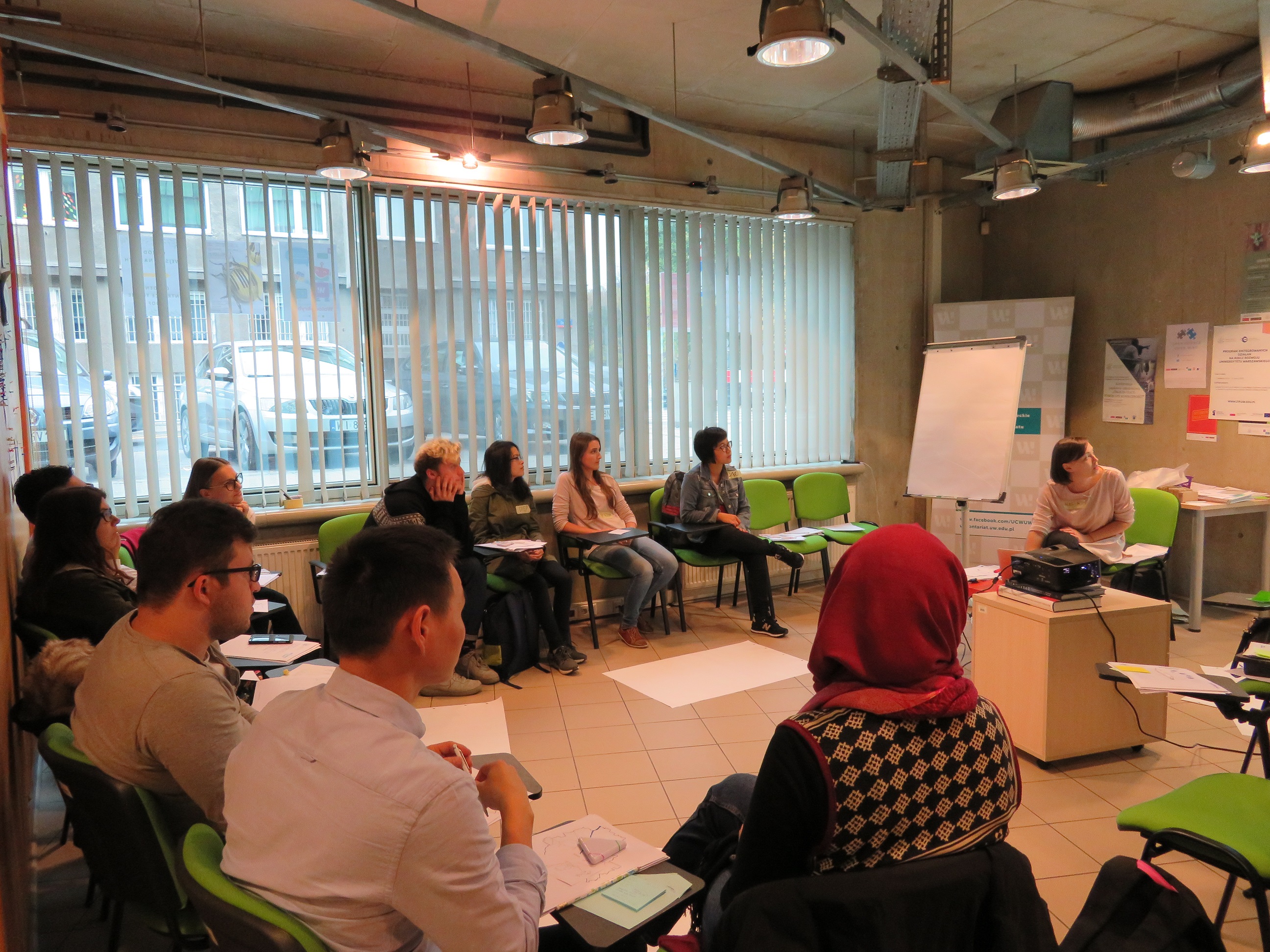 The main focus was put on communicative skills. Students were encouraged to talk to one another about different and culture-oriented topics, they were put in certain situations they might encouter while staying in Poland. Cultural trainer, Katarzyna Kucharska, made sure that every subject was discussed by the whole group. She also provided the most important information about communication theory (based on Ruth Benedict’s theory of cultural patterns) and national cultures (based on Geert Hofstede’s cultural dimensions theory).