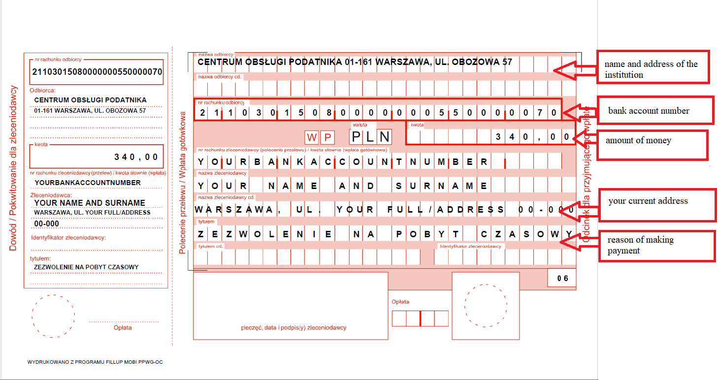 OPŁATA ZA KARTĘ POBYTU + your full name and surname as it’s written