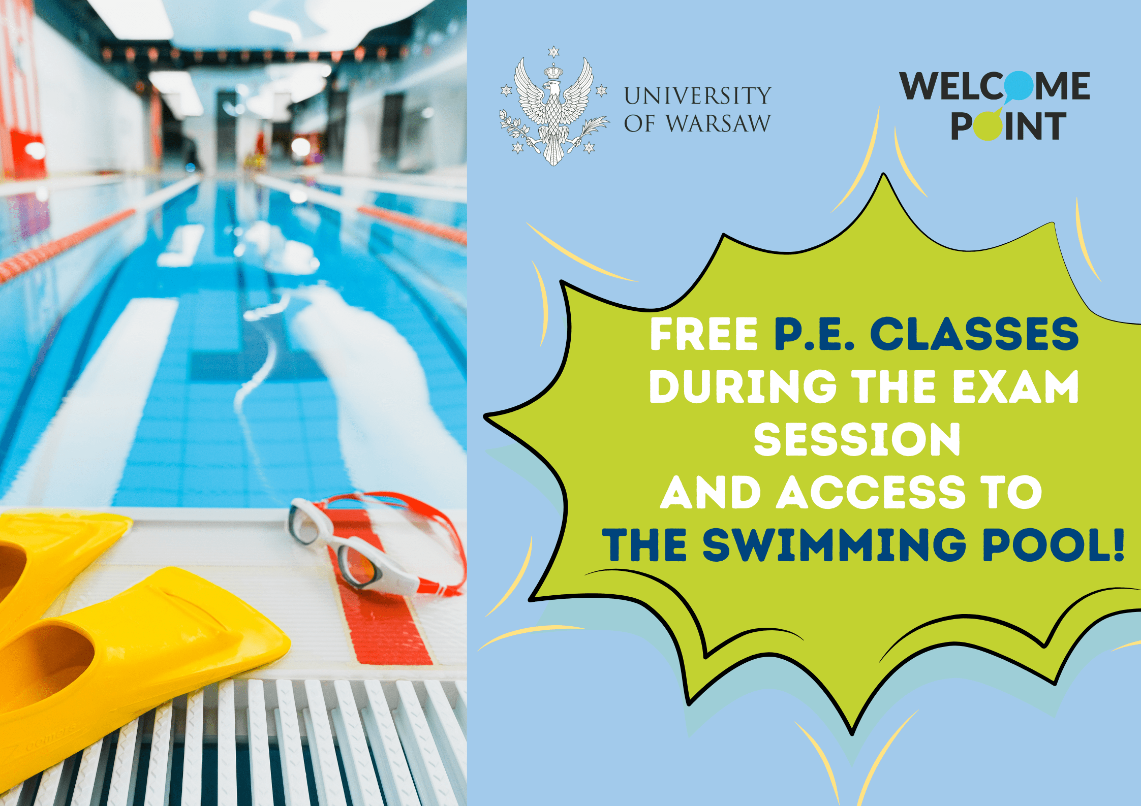 Physical Education and Sports Center University of Warsaw offers free P.E. classes and access to the swimming pool during the summer exam session for students, PhD students, and employees: