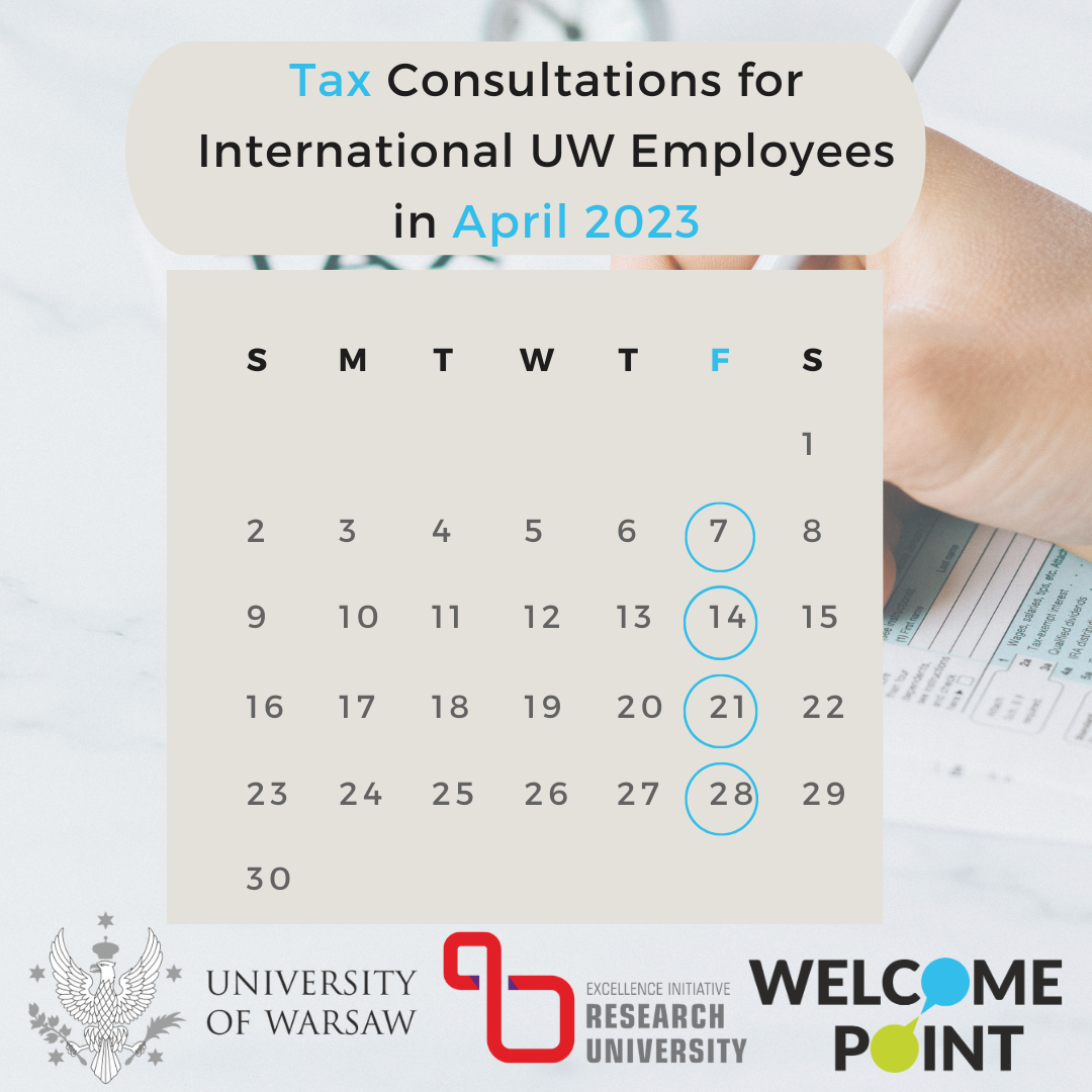 The procress of submitting the tax declarations can be challenging and to make the process a bit easier, Welcome Point invites international employees of the University of Warsaw to join a series of free tax constultations in April. The consultations are conducted by a tax expert from the Faculty of Economic Sciences, mgr. Marek Żukowski.