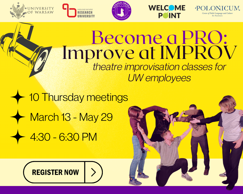 Welcome Point in collaboration with the School of Impro and Centre of Polish Language and Culture for Foreigners “Polonicum”, invites both international and Polish employees of the UW to take part in an inclusive integration activity.