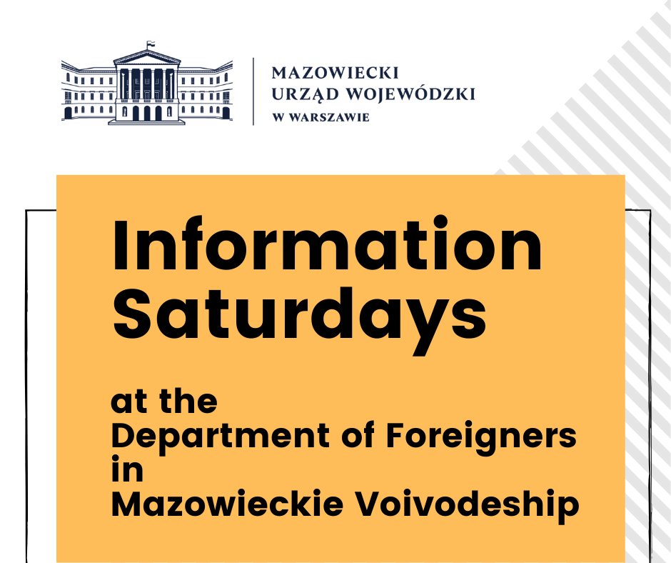 The Department of Foreigners of the Mazowieckie Voivodeship Office at 3/5 Marszałkowska St., invites you to participate in the “Information Saturday” intended for foreigners residing in Warsaw.