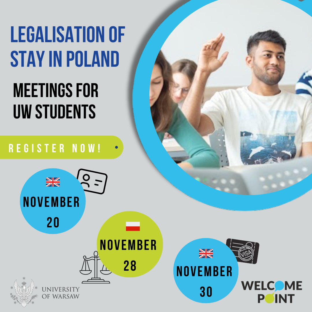 We all know that the subject of legalisation of stay in Poland might seem extremely complicated in the beginning! That’s why Welcome Point would like to invite all international students and PhD Students for three informational meetings on legal issues concerning residence in Poland.