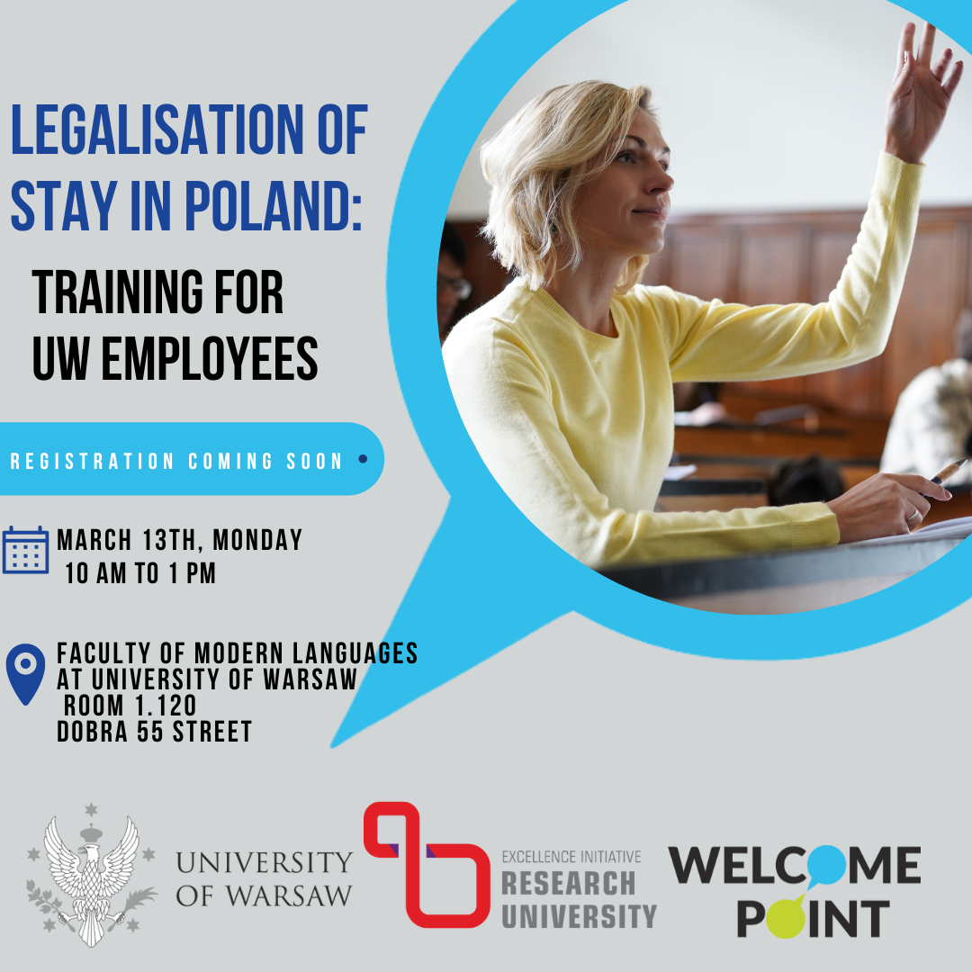 Welcome Point invites employees at the University of Warsaw to join in-person training: „Legalisation of stay in Poland: Training for UW employees.”