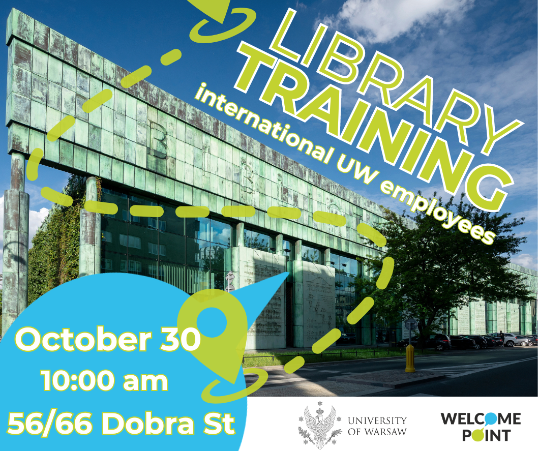 Welcome Point, together with the University of Warsaw Library, invites UW international employees to a Library Training in English, which will be held in person on October 30th at 10:00 a.m.