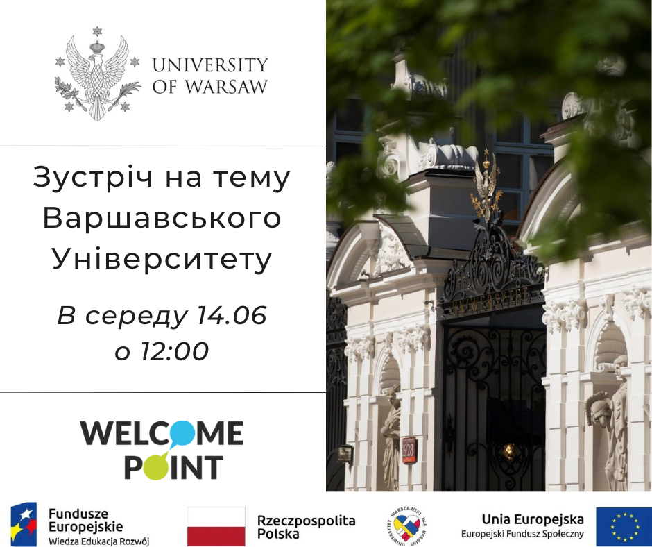 Раді повідомити, що команда WELCOME POINT цього разу запрошує на зустріч присвячену Варшавському Університету! Буде особливо корисно і цікаво для тих, хто збирається вступати на навчання вже цього року або ж наступного. Приходьте, слухайте, цікавтеся – ми відповімо на всі Ваші запитання. На зустрічі Ви дізнаєтесь: