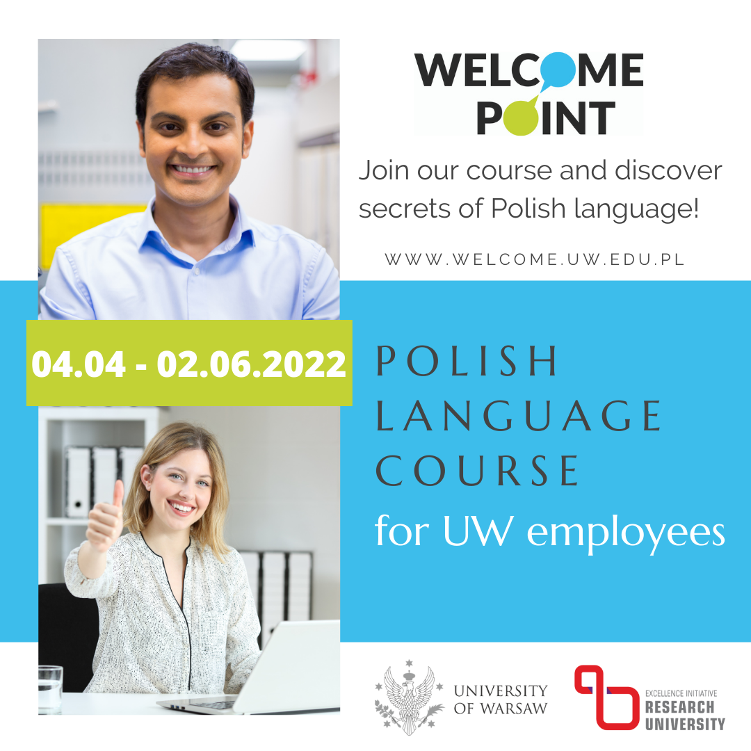 Welcome Point is continuing free Polish language courses for UW international staff. The third trimester begins on April 4th. Enrollment for classes lasts until March 28th on the Kampus platform. You are cordially invited!