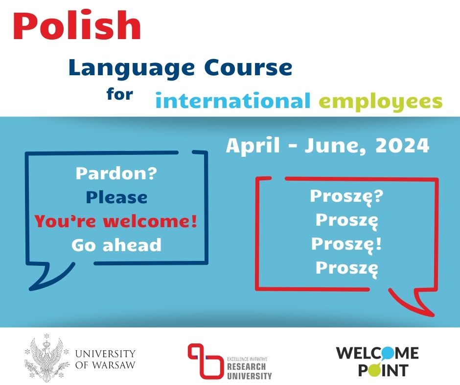 The University of Warsaw is offering an unpaid 30-hour online Polish language courses. Classes will be held twice a week between April and June, 2024. The courses are intended for University employees.