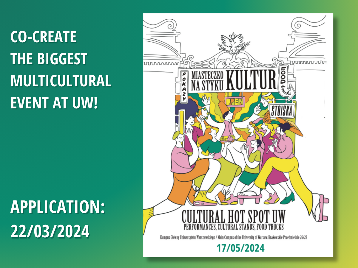 If you are interested, first please fill in this Volunteer Form (check the box “Organising Miasteczko na Styku Kultur – Cultural HotSpot UW”).