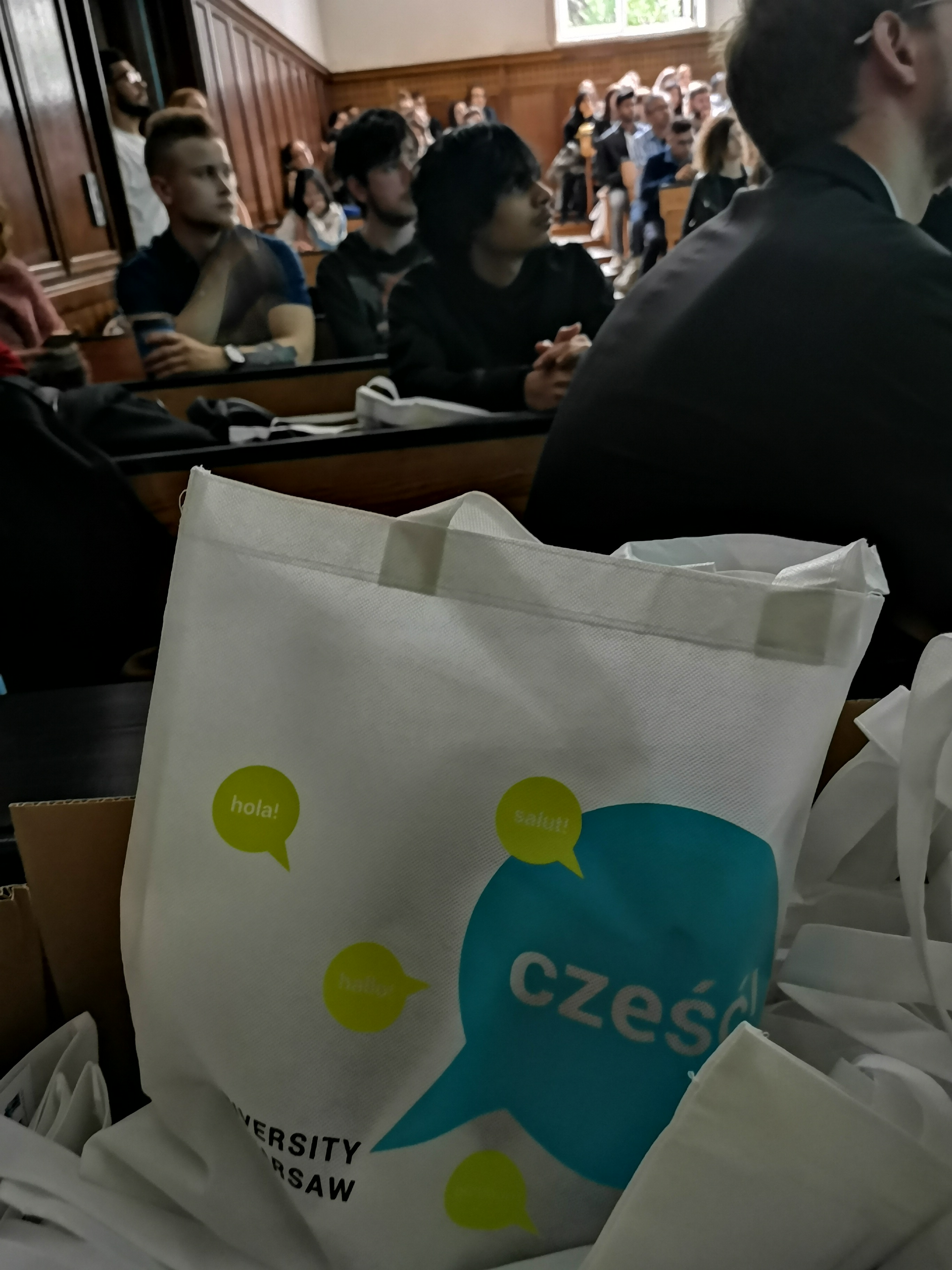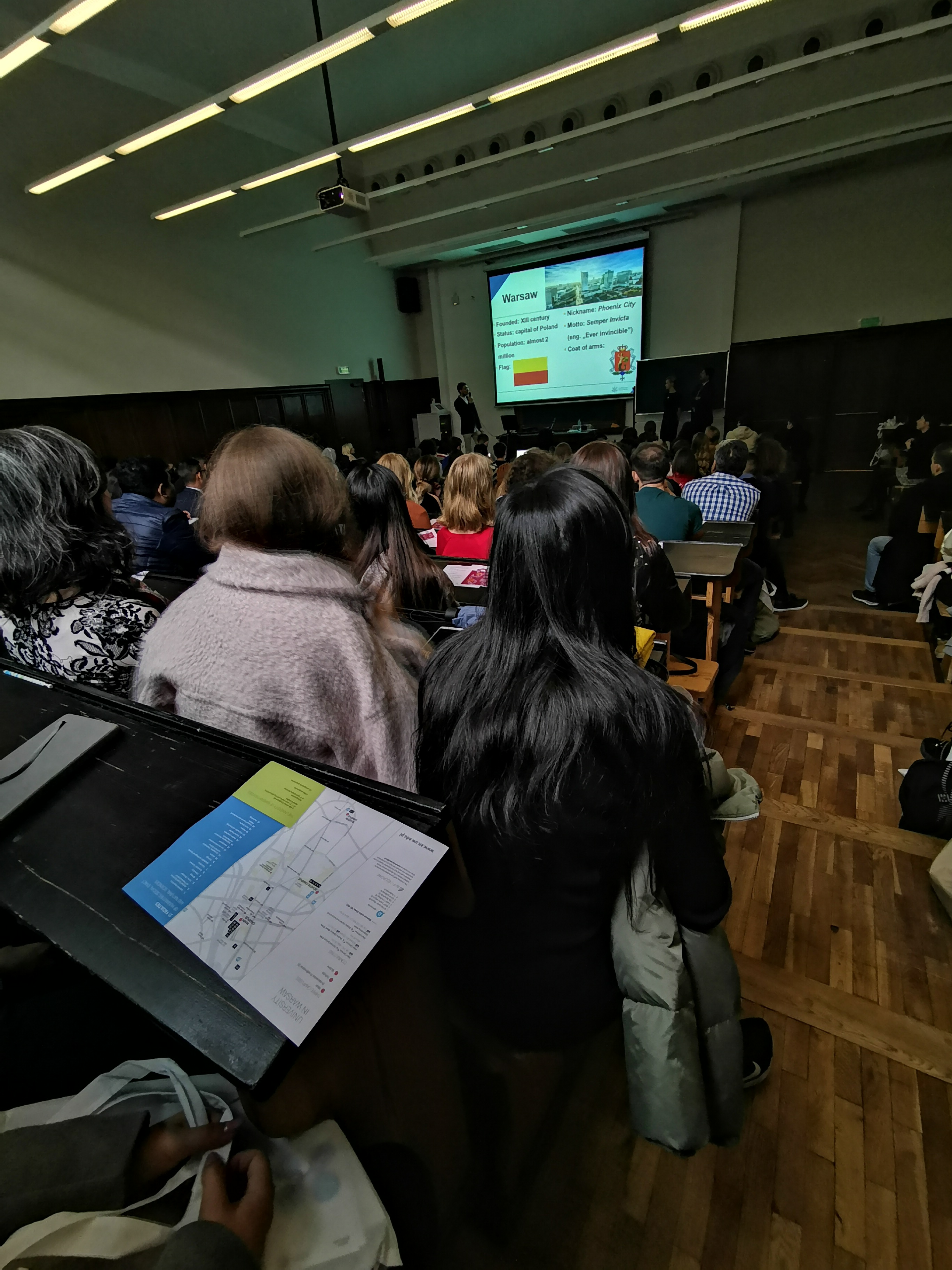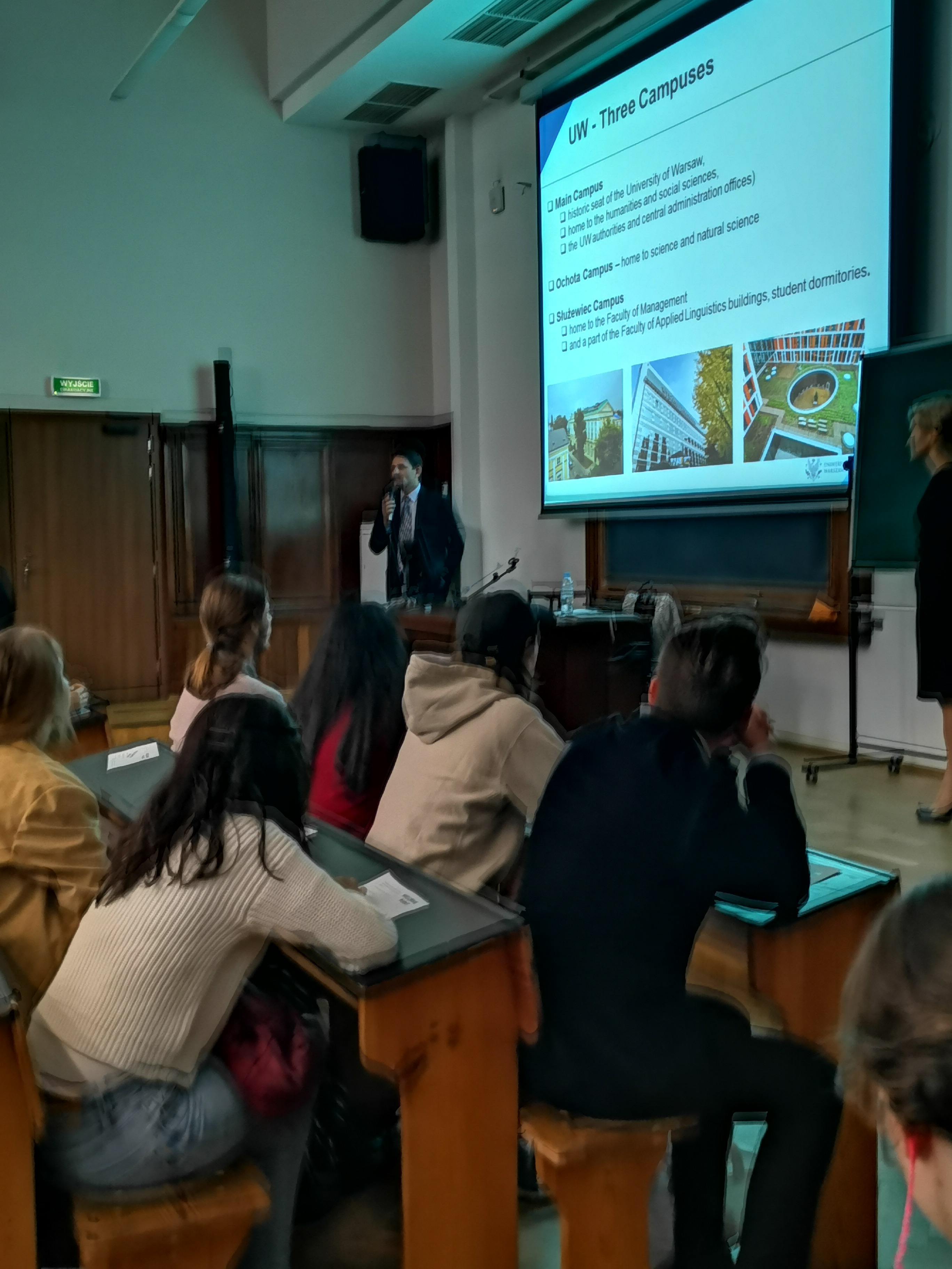 Yesterday was an official beginning of the academic year 2019/2020, but long-term international students have already started! On Monday (30.09.2019) Welcome Point organized two meetings – one held in English, one in Polish. During meetings students have learned the most important things about the University and Poland. Also, three students had a chance of winning one of UW gadgets: a navy blue cap, a travel mug or a pendrive.