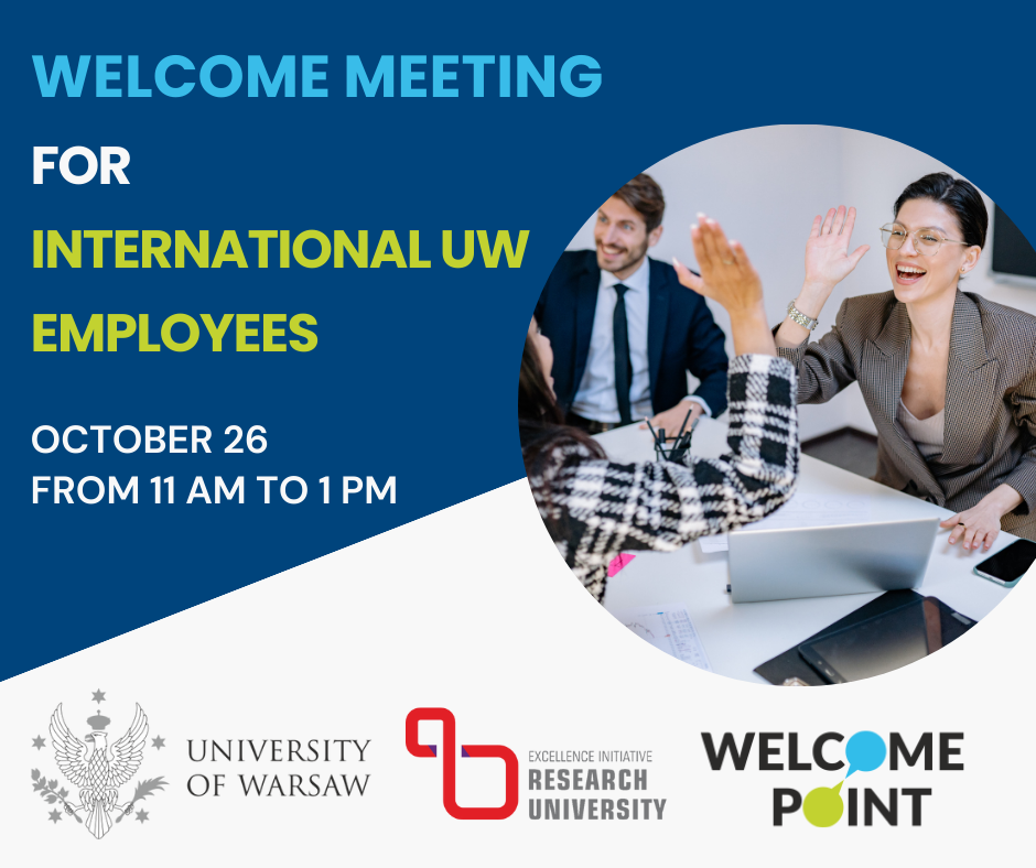 We cordially invite all new international UW employees to join the Welcome Meeting to facilitate your first steps at the University and in Warsaw!