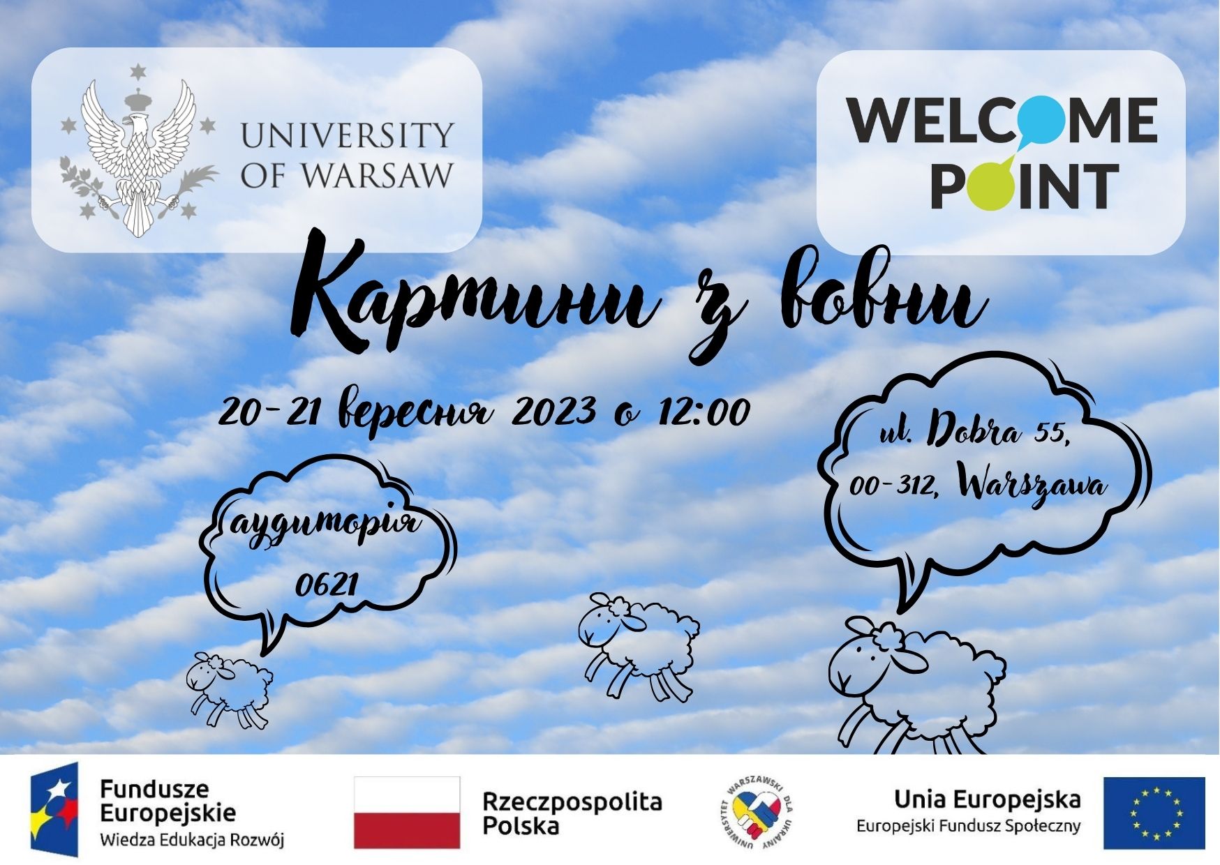Нагадуємо, що WELCOME POINT на Добрій діє, як інформаційний центр для людей з України, які не пов’язані з Варшавським Університетом, тут ви можете отримати інформацію на усі питання які вас цікавлять.